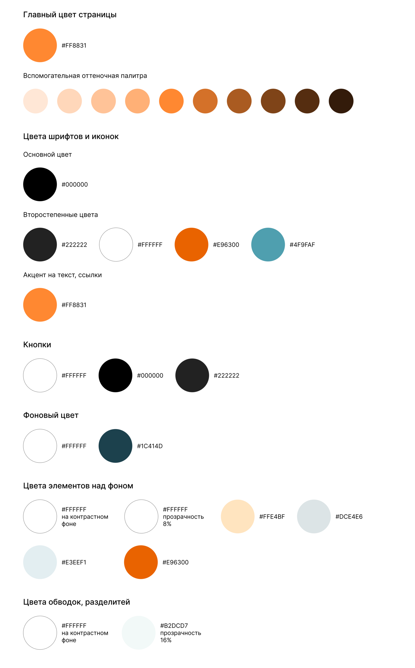 - При размещении текста на оранжевом или темном сине-зеленом фоне убедитесь, что используется белый цвет (#FFFFFF) для сохранения хорошего контраста.